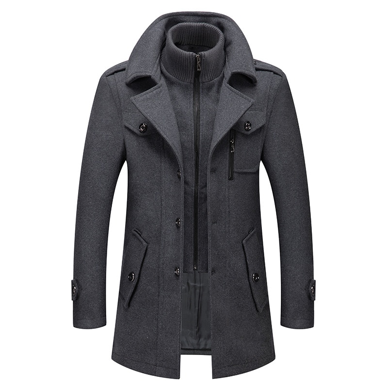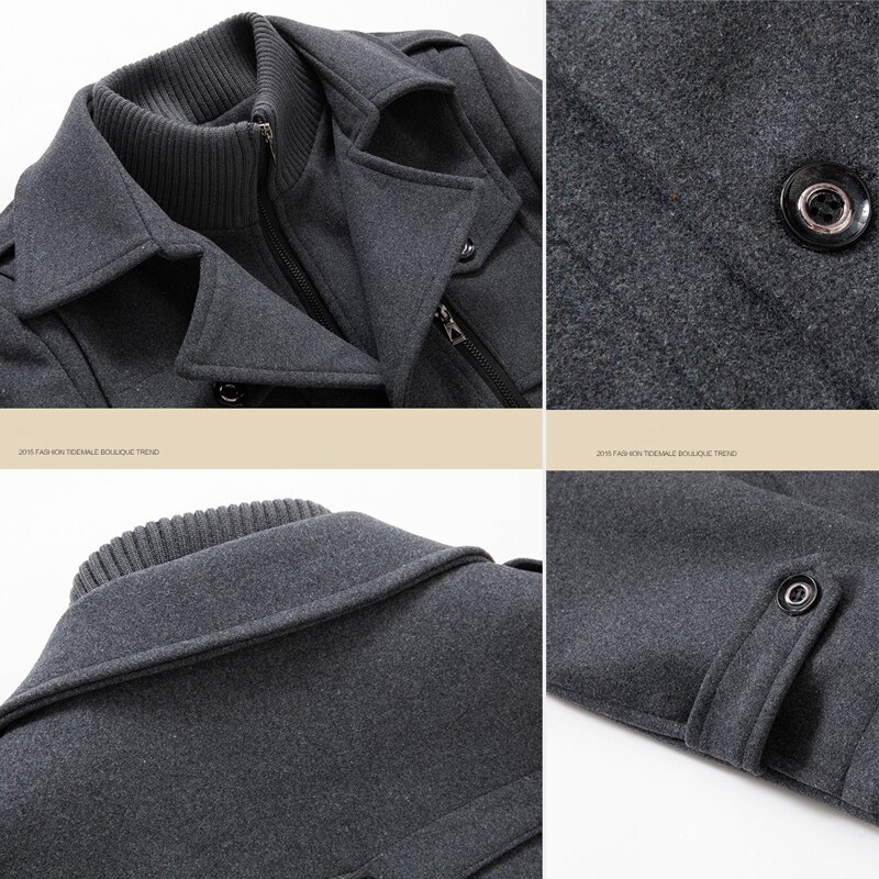 Woolen Coat Men Autumn Winter Coat Men Solid Color Cold Resistant Wool Blends Overcoat Men Double Collar Casual Trench Coat Male