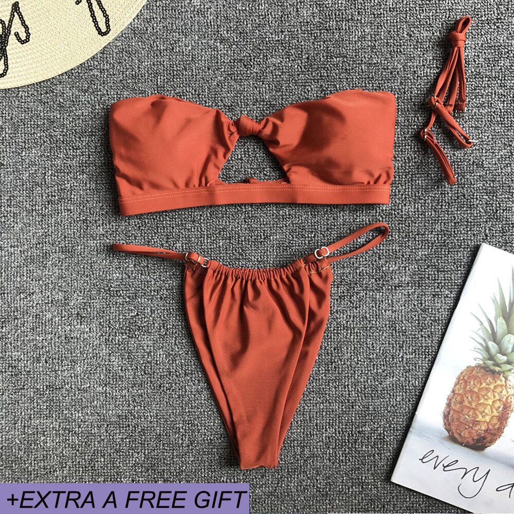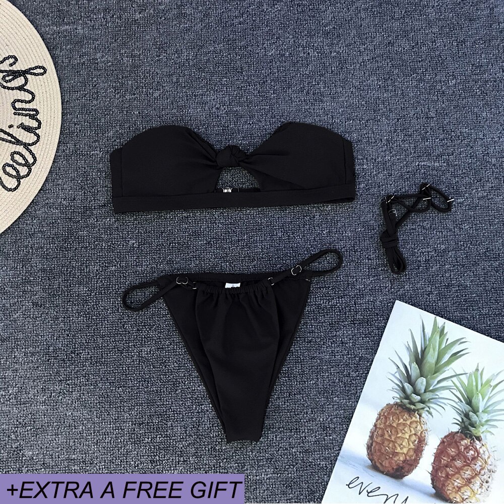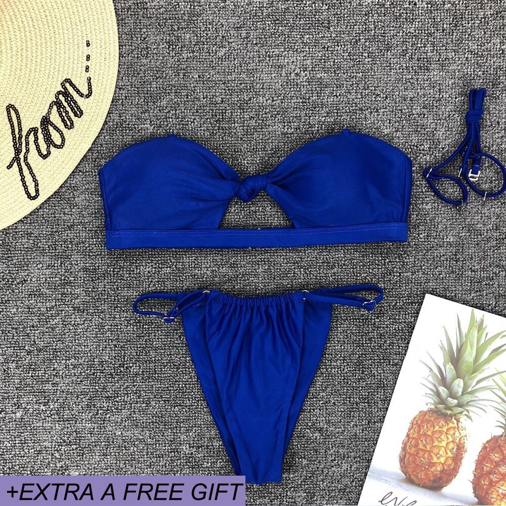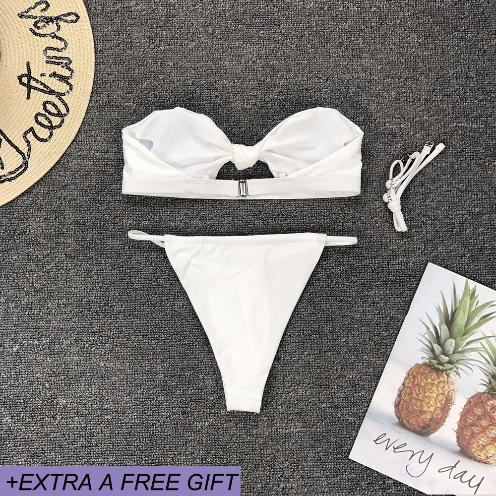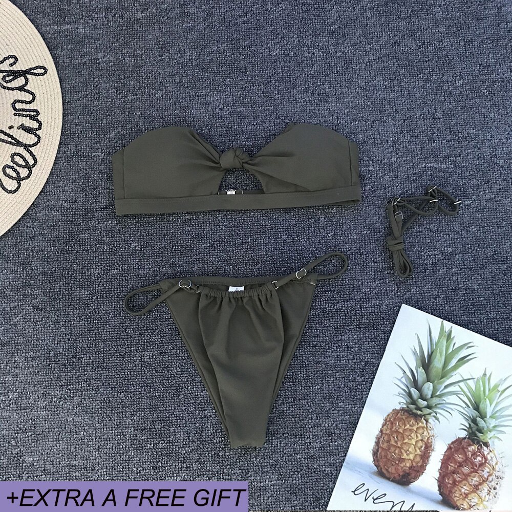 Bikini Set New Women Bandeau Swimsuit Bandage Swimwear High Cut Bathing Suit Solid Bikini Push Up Beach Wear Maillot De Bainv