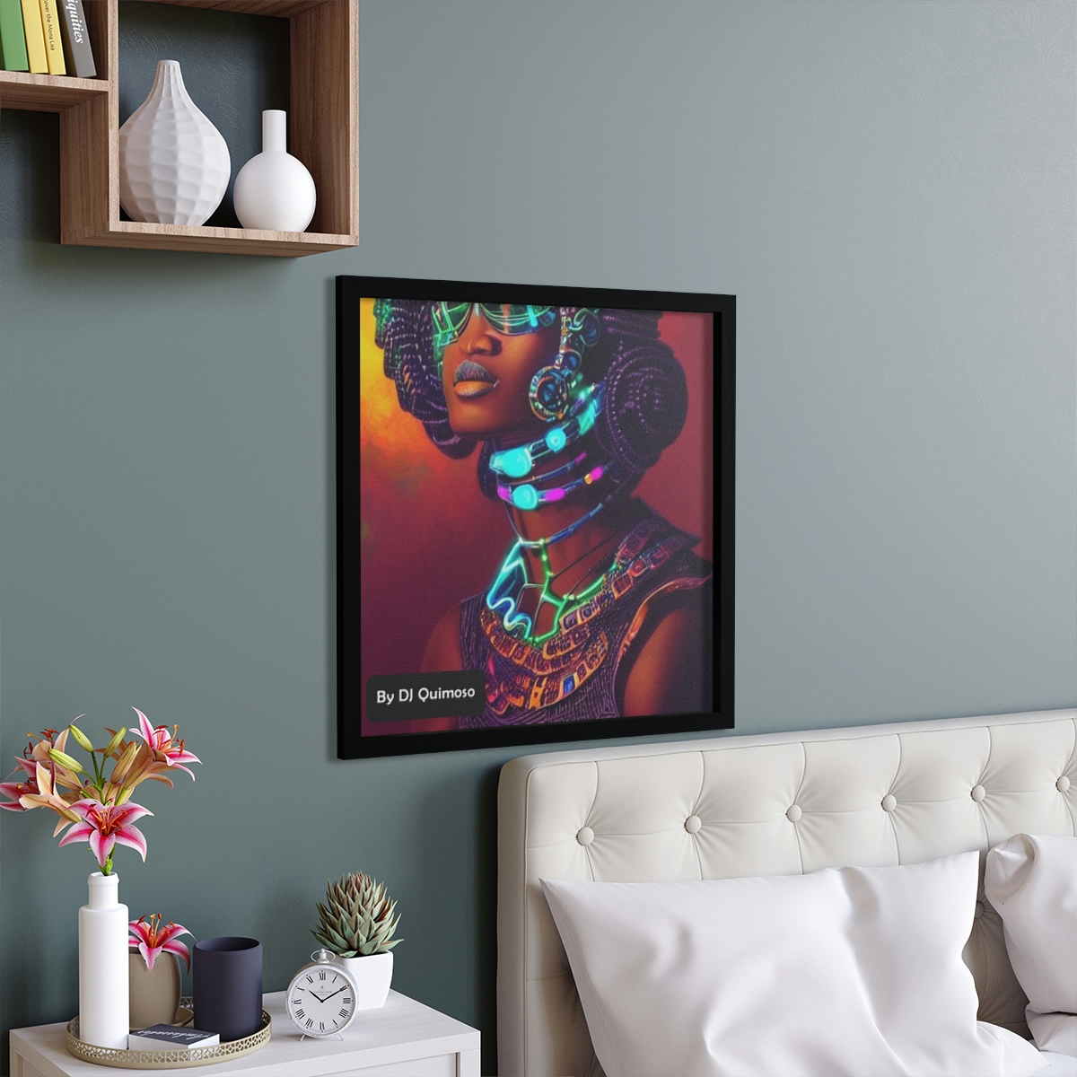 The Cyber African Woman 19 was made to bring custom style into any home, these personalized posters are a great tool to enhance your surroundings. Cyber African Woman 19 is a digital artwork from the collection Cyber African Woman, features a hand-crafted wooden frame, and is printed with top-tier Mimaki UV inks.