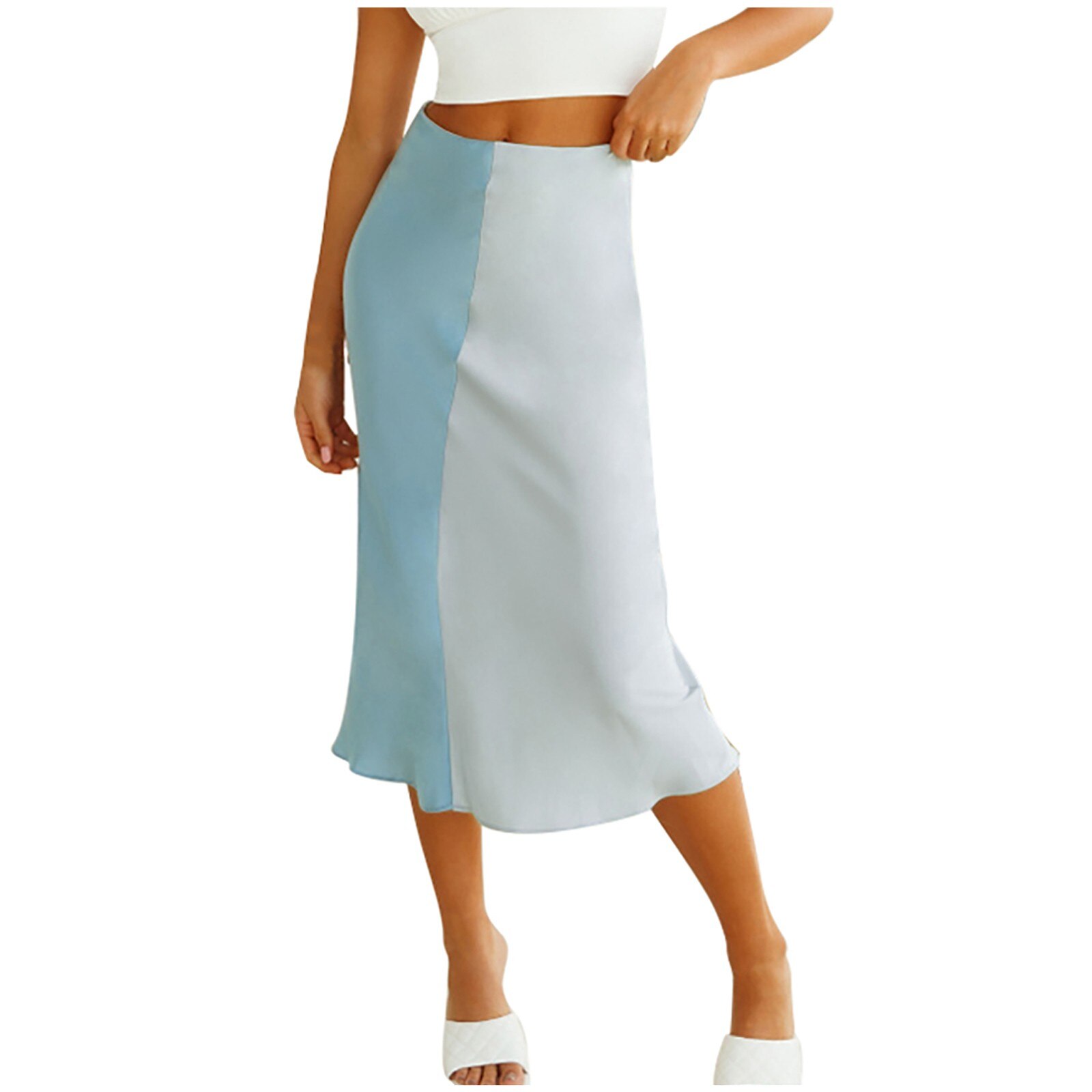 Women’s fashion Dress high waist zipper Satin color matching Dress