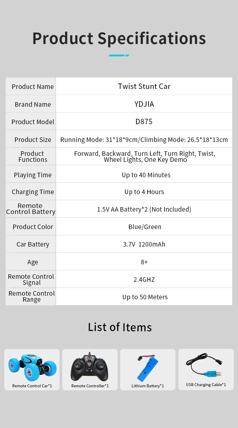 Lighting Twisting Car Dumper Climbing Car Wireless Charging Remote Control Double-Sided Car Boy Toy Car