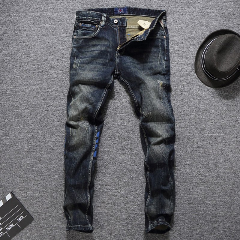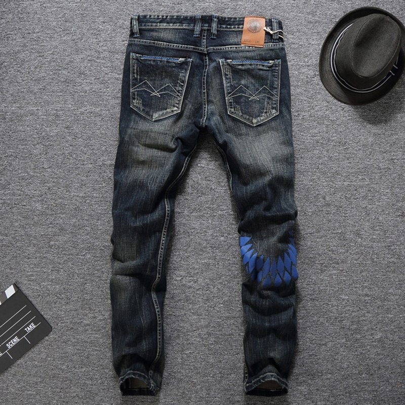 Men Jeans High Quality Slim Fit Classical Jeans Cotton Denim Long Pants Brand Printed Jeans Men Size 29-38