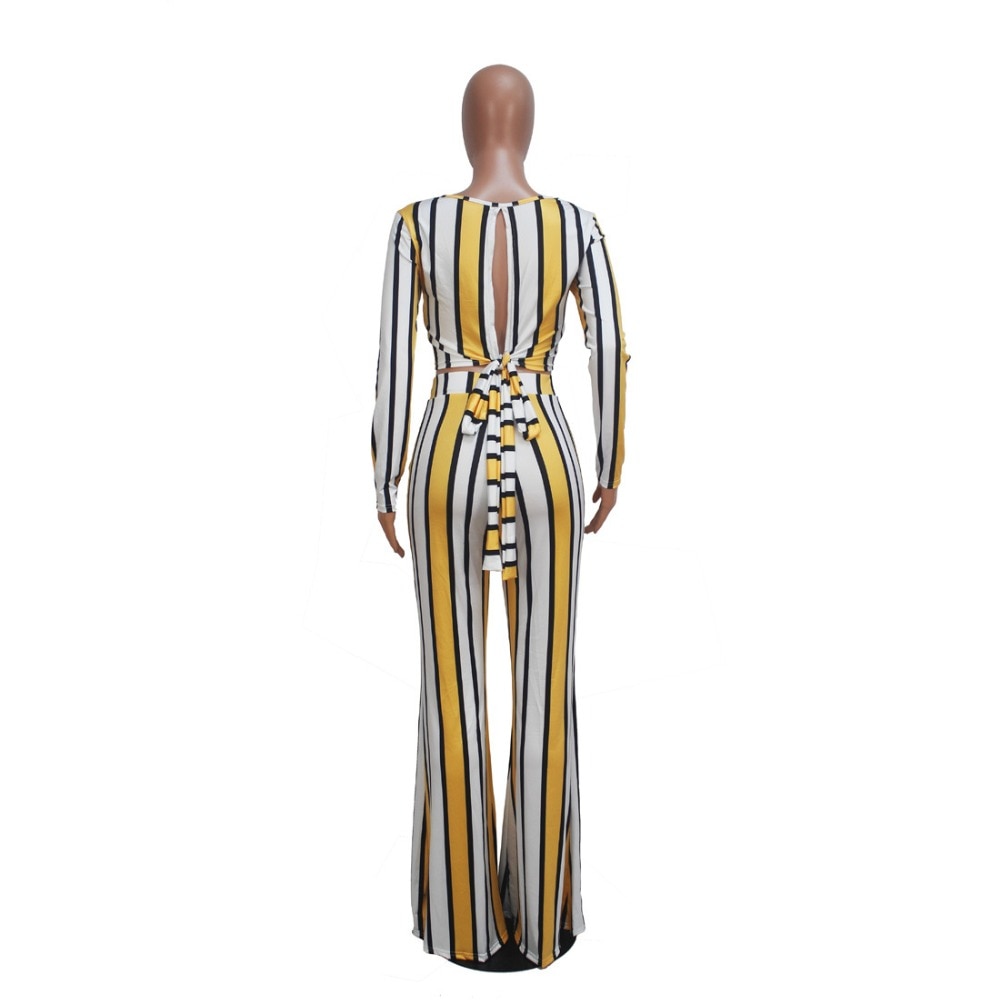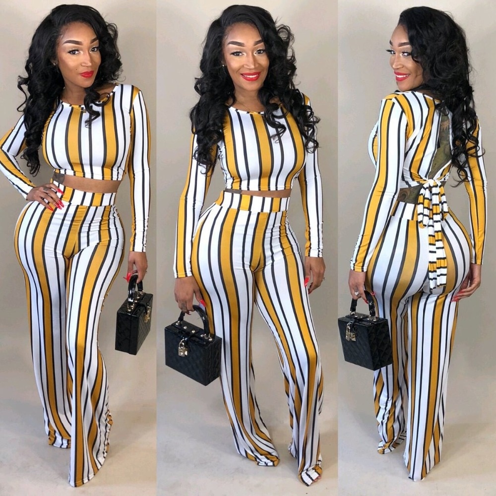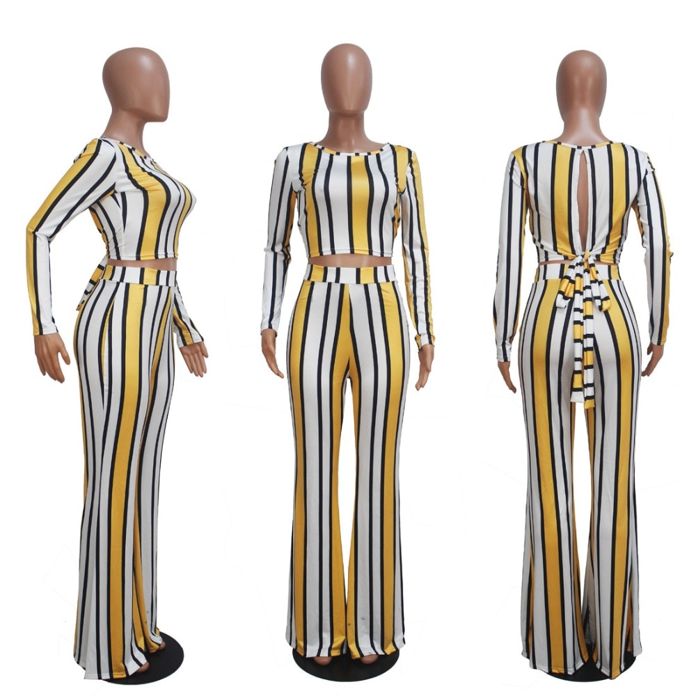 Sexy 2 two piece set top and pants autumn outfits tracksuit women long sleeve wide leg pants striped print quantity