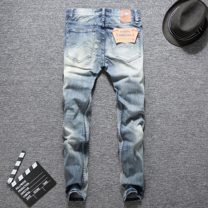 Slim Fit Men Jeans Light Blue Color Button Jeans Elastic Long Pants Balplein Brand Classical Jeans Men quantity