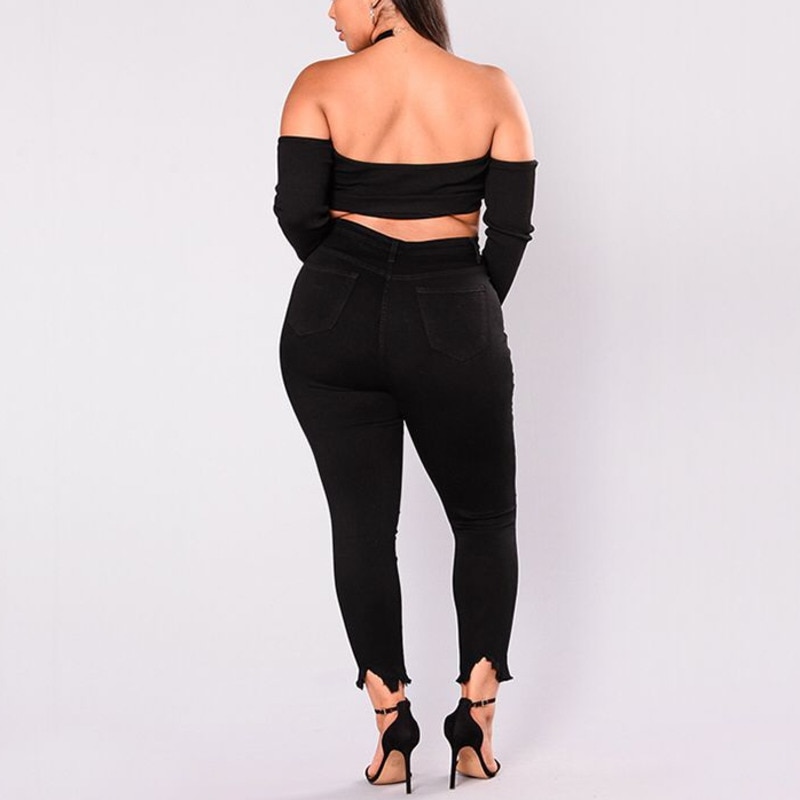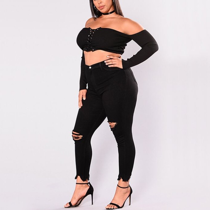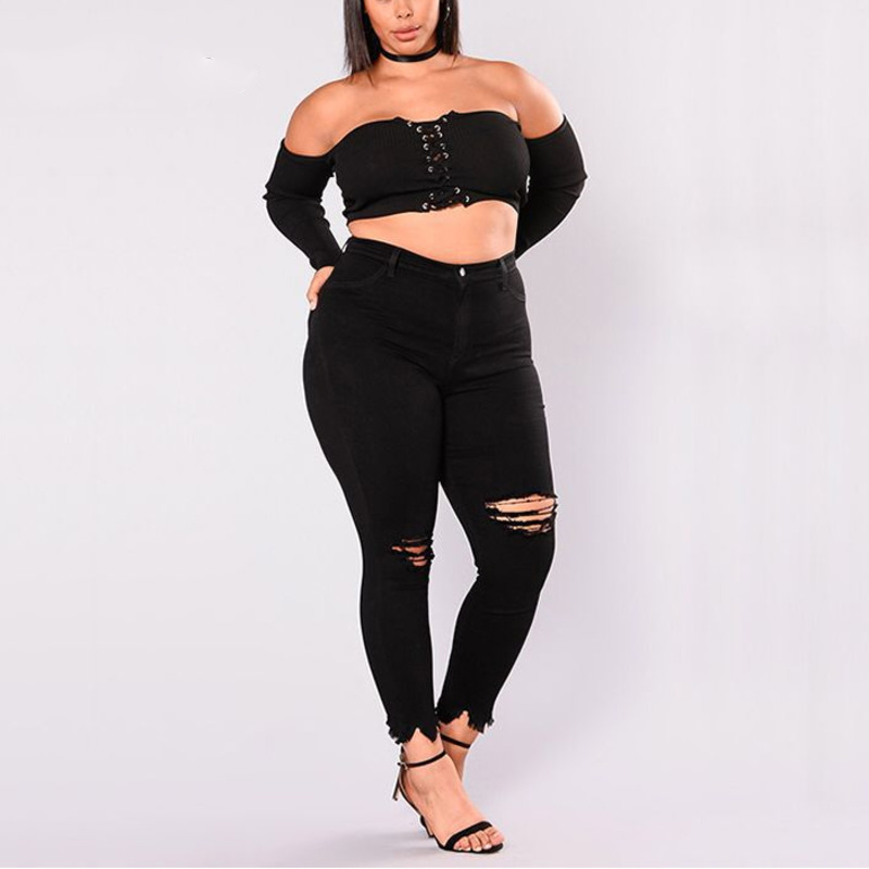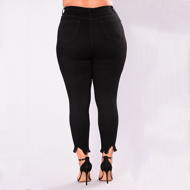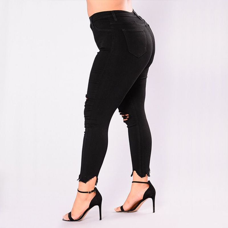 Women Holes Plus Size Jeans Pants Skinny Elastic Pencil Pants Mid Waist Black Jeans Woman Casual Spring 2-7XL Trousers